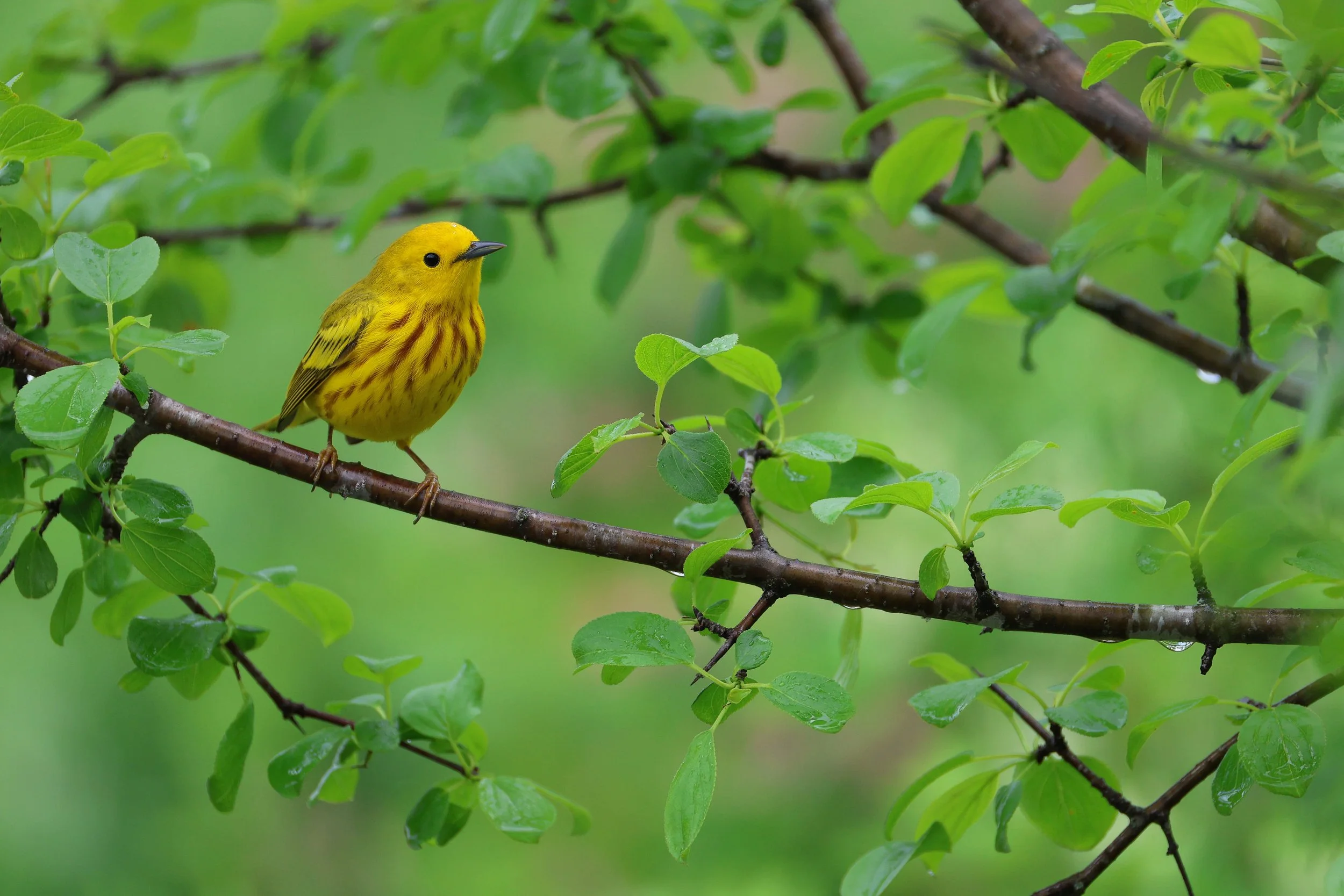 Yellow warbler | Canon R8 + Canon RF 200-800mm | ISO 1000, 1/500, f/9 at 800mm
